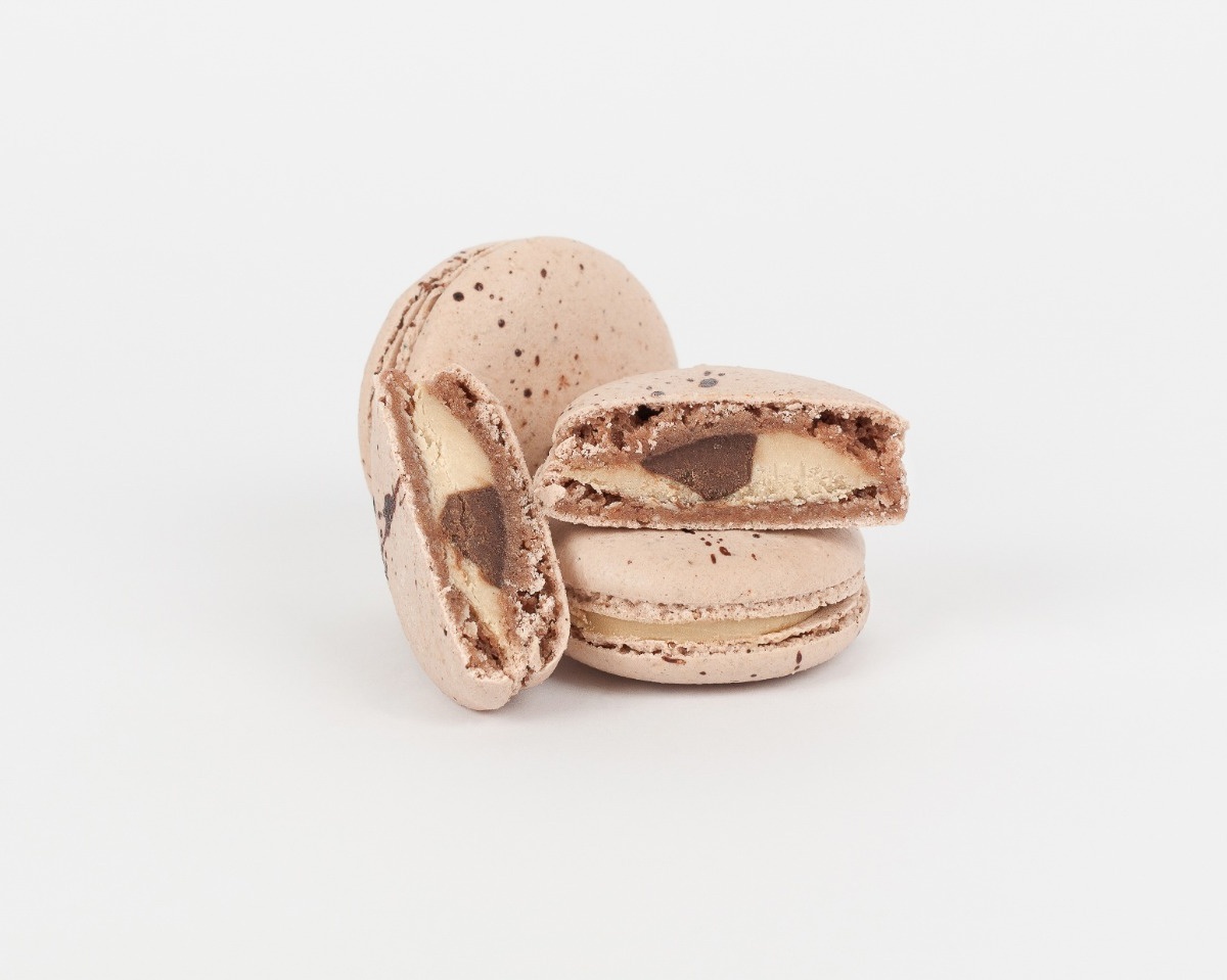 Крышечки на фундучной муке, крем с белым шоколадом,сливками, кофе. Центр-шоколадный